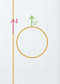 A wire loop is being pulled away from a current-carrying wire.![]() What is the direction of the induced current in the circular loop? |