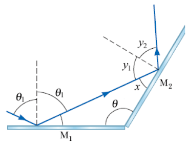 Find the direction of the ray after it is reflected from mirror M2 (i.e. What is y2?).