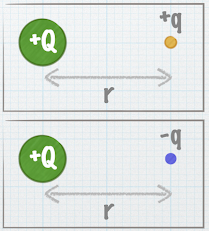 ![]() A proton and an electron are in a constant electric field created by oppositely charged plates. You release the proton from the positive side and the electron from the negative side. Which feels the larger electric force? |