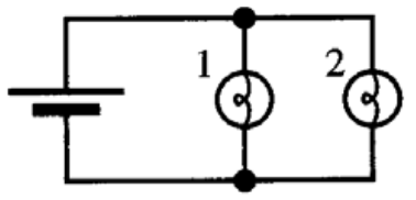 Set up a two-bulb circuit with identical bulbs so that their terminals are connected together as shown. Bulbs connected in this way are said to be connected in parallel.