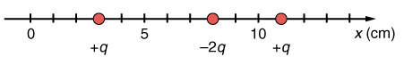 What is the force on the charge located at 𝑥 = 8.00 cm in the figure given that 𝑞 = 1.00 μC?![]() |