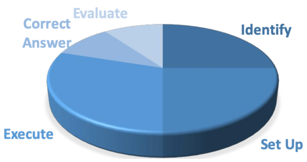 The I.S.E.E. method consists of four parts: Identify, Set Up, Execute, and Explain/Evaluate.