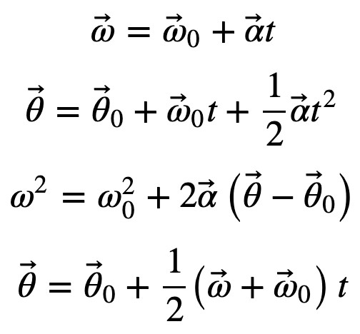 - Derive the kinematic equations for rotational motion with constant angular acceleration