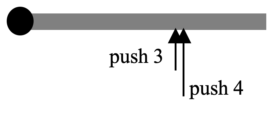 - Suppose the force exerted by push 4 is exactly twice as strong as the force exerted by push 3. Intuitively, how does the torque generated by push 4 relate to the torque generated by push 3? Is it half as big? Twice as big? Four times as big?