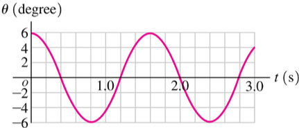 ![]() A simple pendulum consists of a point mass, m, attached to the end of a massless string of length L. It is pulled out of its straight-down equilibrium position by a small angle [insert: \theta] and released so that it oscillates about the equilibrium position in simple harmonic motion. A graph showing the pendulum’s angular position as a function of time is given in the figure. What is the period of the pendulum’s motion? |