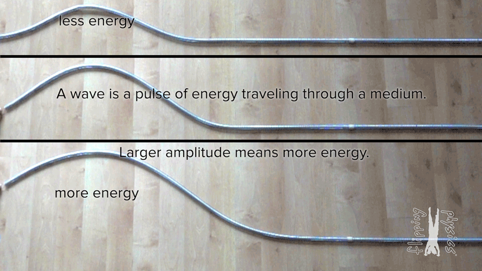 - Describe, using a mathematical expression, how the energy in a wave depends on the amplitude of the wave