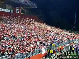 We will talk a lot about a wave traveling on a string. The string is the medium and the particles that make up the string are the particles that will vibrate like the people in the stadium wave. Look at this animation to see how, when a wave pulse travels in the string, the particles move up and down while the wave propagates to the right.