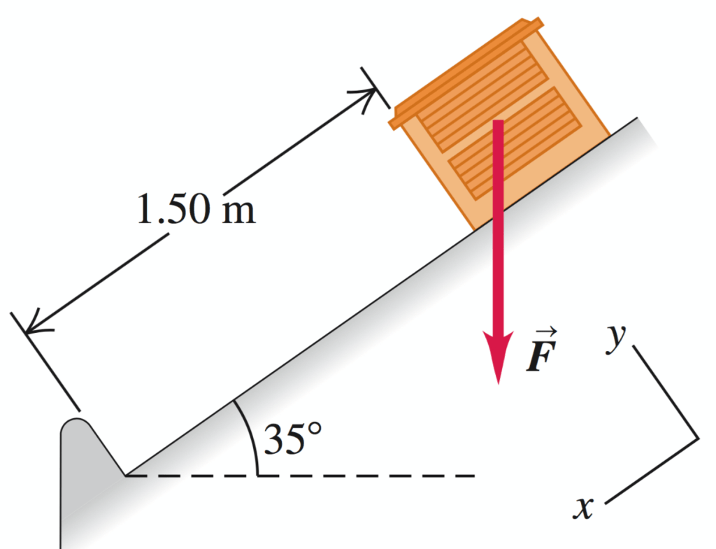 (b) If the fasteners fail, the unit slides 1.50 m along the roof before it comes to a halt against a ledge. How much work does the weight force do on the unit during its slide if the unit has the weight calculated in part (a)? The work done by a force F on an object that undergoes a displacement s is W = F • s.