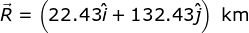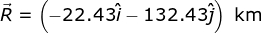 Answer: (a) , (b) R = 134.32 km, (c) , (d) 80.2° south of west