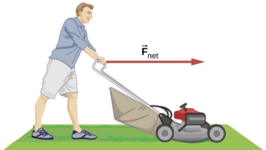 (a) If the force of friction opposing the motion is 24 N, what force (in newtons) is the person exerting on the mower?