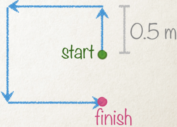 ![]() A 1-kg object is moved part-way around a square loop as shown. The square is 1 m on a side. The final position is 0.5 m lower than where it started. How much work has gravity done on the object during its journey? (Use g ≈ 10 m/s2) |