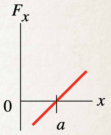 ![]() The graph shows a conservative force Fx as a function of x in the vicinity of x = a. As the graph shows, Fx = 0 at x = a. Which statement about the associated potential energy function U at x = a is correct? |