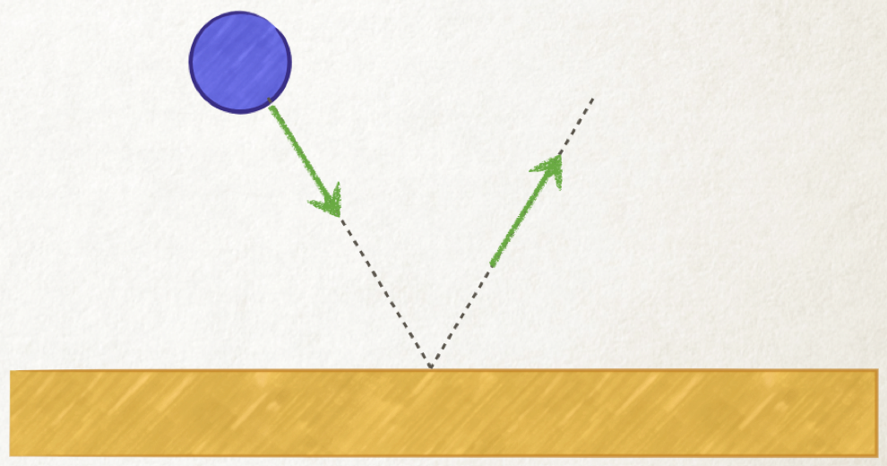 ![]() A ball bounces off the floor as shown. The direction of the impulse on the ball is … |