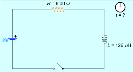 Consider the circuit in the figure. Suppose the circuit elements have the following values: emf = 10.0 V, R = 6.50 Ω, and L = 34.0 mH.