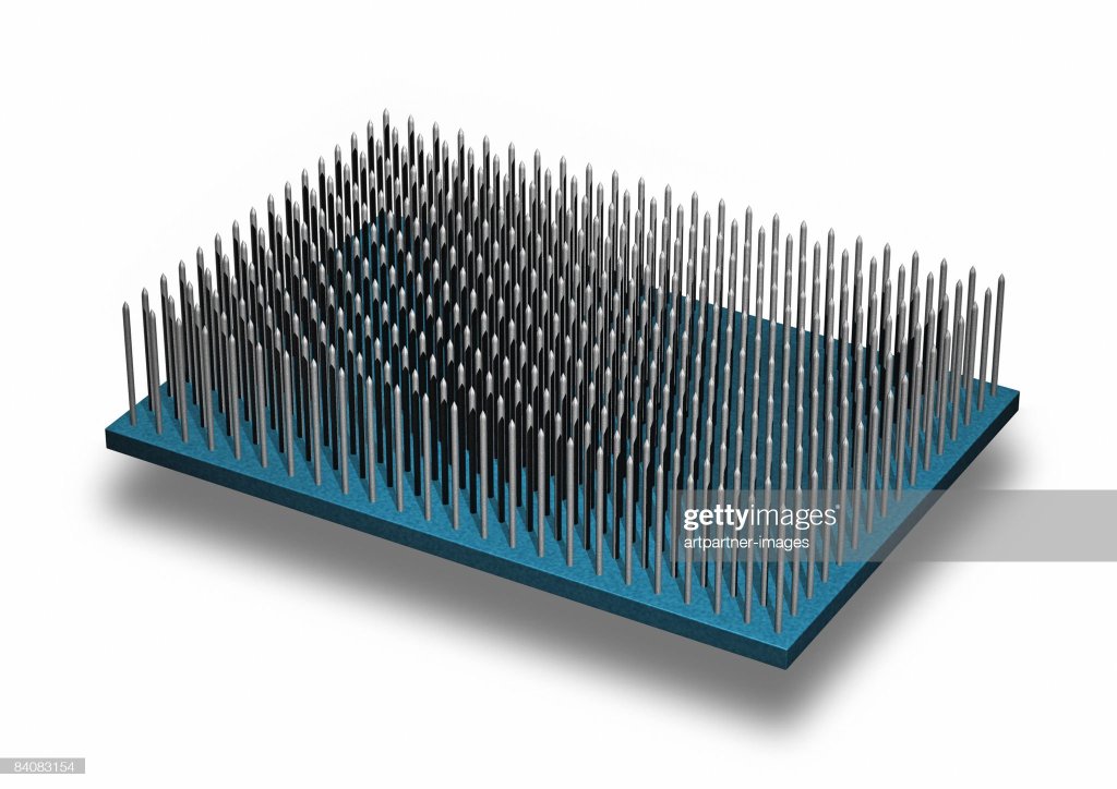 The nails in this bed of nails will represent uniform electric field lines.