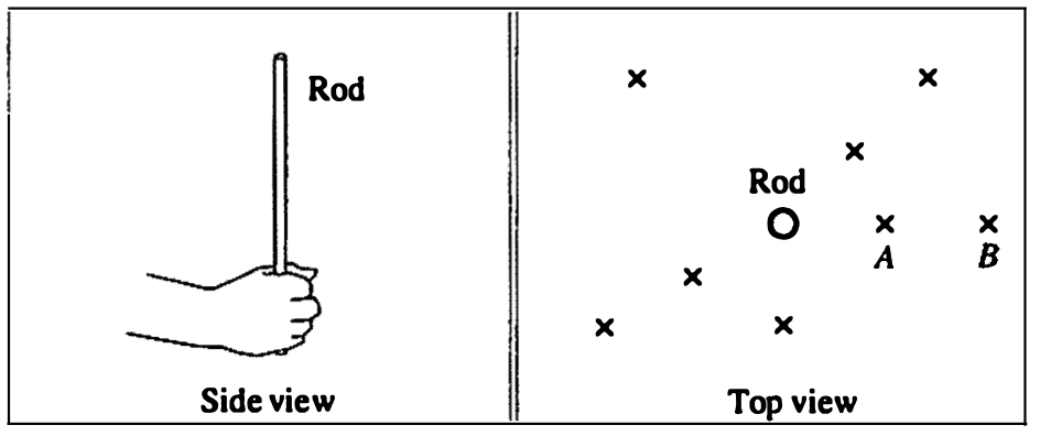 A. Imagine a plastic rod that is electrically charged. You are going to explore the region surrounding the rod by using a pith ball that has a charge of the same sign as the rod.