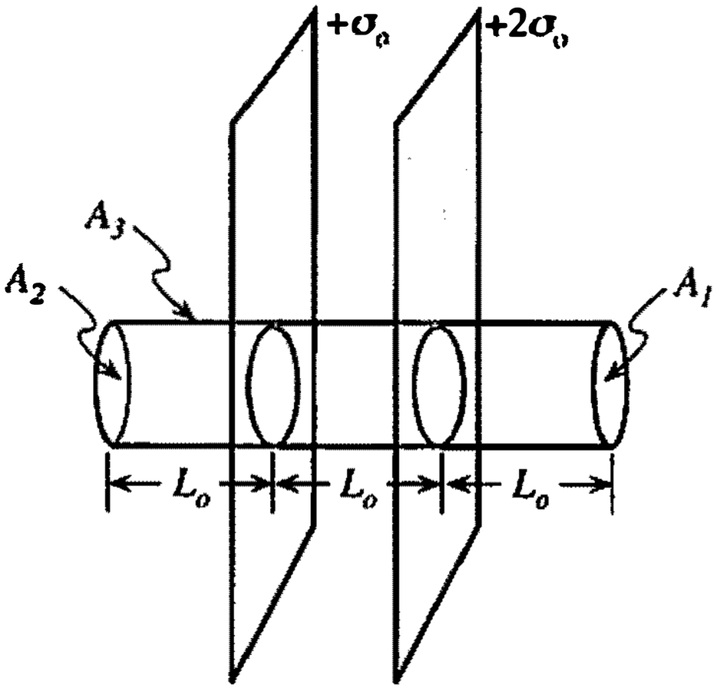 - Use Gauss’ law to find the electric field a distance L0, to the right of the rightmost sheet.