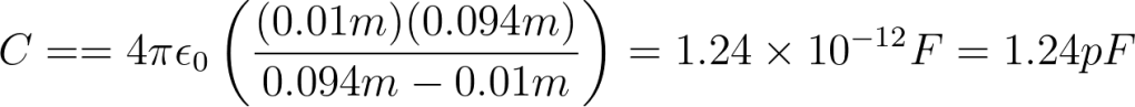 | A parallel-plate capacitor has a capacitance of 1.97 pF and a plate area of 5.86 cm2. What is the separation distance between the plates? |