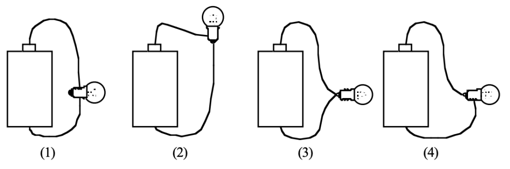 B. Draw standard circuit diagrams for the four arrangements of battery, bulb, and wires shown above. Which of them have identical circuit diagrams?