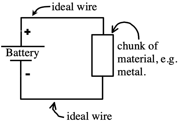 Real batteries always have some small, unavoidable internal resistance “r” in them. We can usually neglect it, but in real life (like if you short circuit a battery) the current is large but never infinite due to the small but finite “r”. What I mean by short circuit a battery is to connect the + terminal directly to the – terminal with a wire. If you do this, the battery will get really hot. Where do you think that heat comes from? There’s a lot of friction going on inside that battery and this is the same friction that we call resistance.
