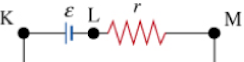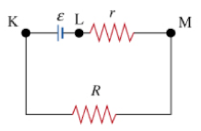 ![]() For the circuit shown where r is an internal resistance and R is an external resistor, which potential difference corresponds to the terminal voltage of the battery? |