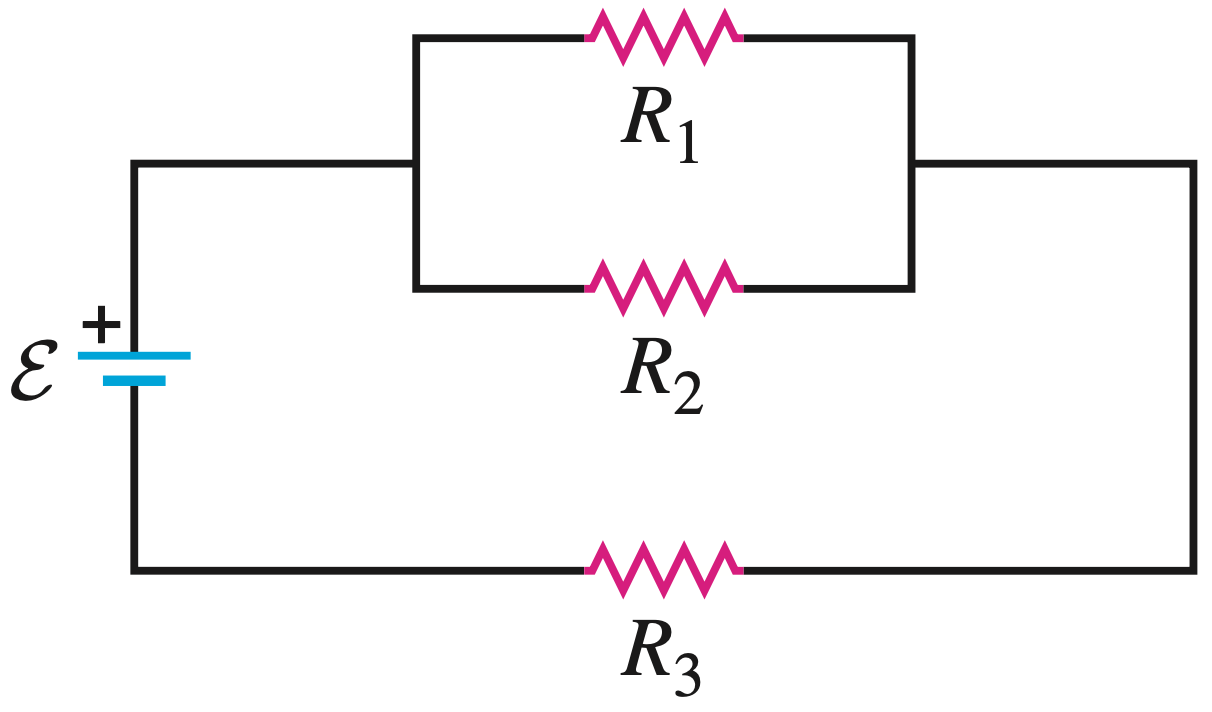 In the figure, R1 = 3.00 Ω, R2 = 6.00 Ω, and R3 = 5.00 Ω. The battery has negligible internal resistance. The current I2 through R2 is 4.00 A.