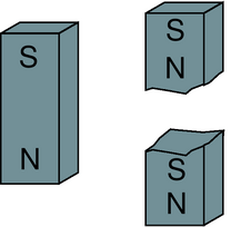 Unlike electricity, you’ll never see a magnet with two N poles or two S poles. You always have something called a “dipole” magnet, because it has two (different) poles: N and S. If you break a magnet, you DON’T get one “N-only” and one “S-only” magnets, instead you simply get two smaller dipole magnets.