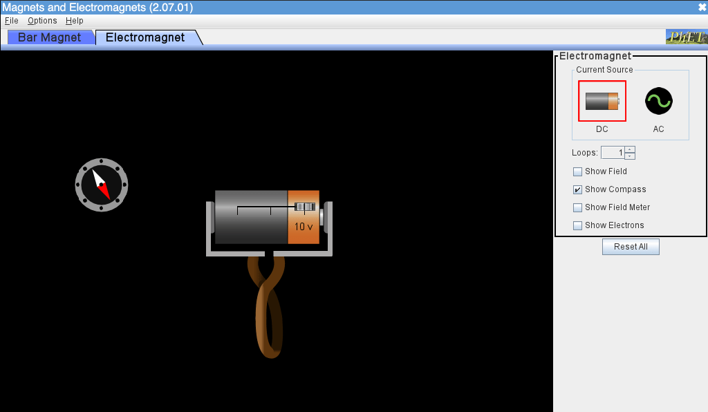 Switch to the Electromagnet tab at the top of the simulation.