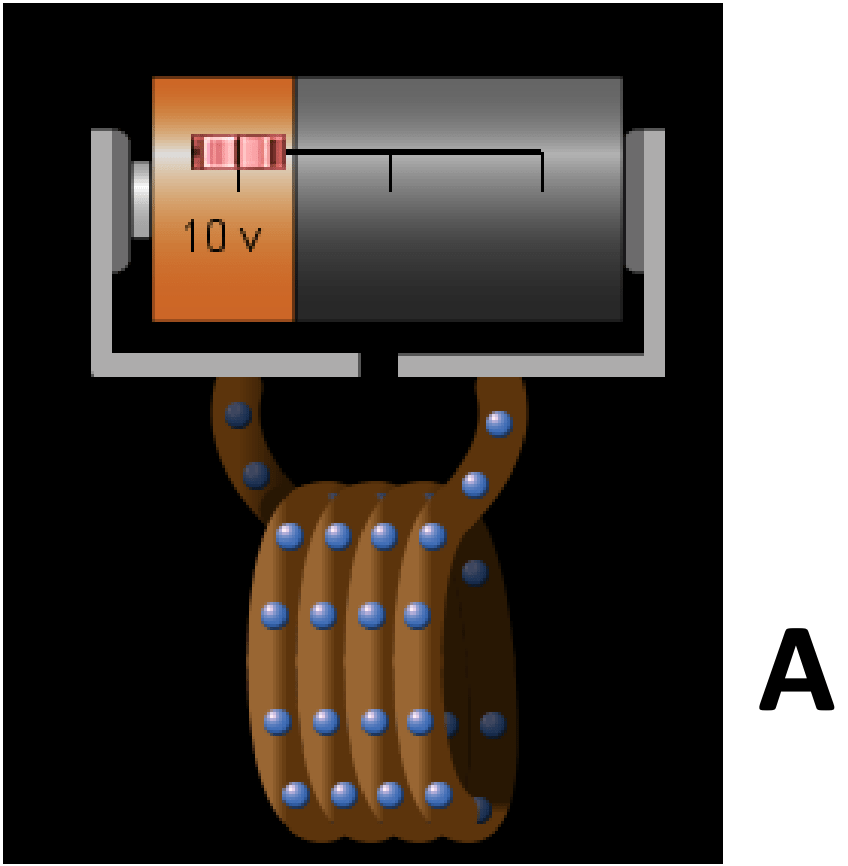 Based on your observations, summarize the similarities between the bar magnet and the coil. What happens to the current in the coil when you set the voltage of the battery to zero? What happens to the magnetic field around the coil when you set the voltage of the battery to zero? Play with the voltage slider and describe what happens to the current in the coil and the magnetic field around the coil. What is your guess as to the relationship between the current in the coil and the magnetic field?