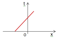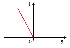 | Which world line (in red) represents an object moving to the left at constant velocity along the x axis? |