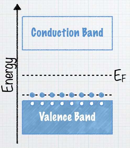 With all those positive charge carriers in the valence band, we call this a p-type semiconductor. What is the net charge charge on this material? |
