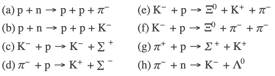 Which of the following reactions cannot because the law of conservation of strangeness is violated?