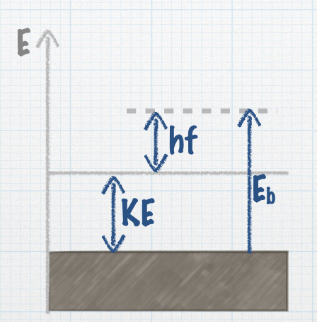 Which of the following energy diagrams correctly describes the photoelectric effect? (Eb is the binding energy, or the work function)