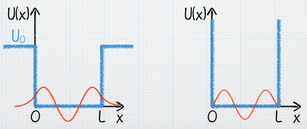 Consider two square wells of the same width, one with finite walls and the other with infinite walls. Compare the energy and momentum of a particle trapped in the finite well with the energy and momentum of an identical particle in the infinite well.